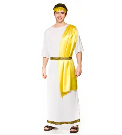 Ancient Greek costume includes white tunic with attached Sash, Belt & Headband.